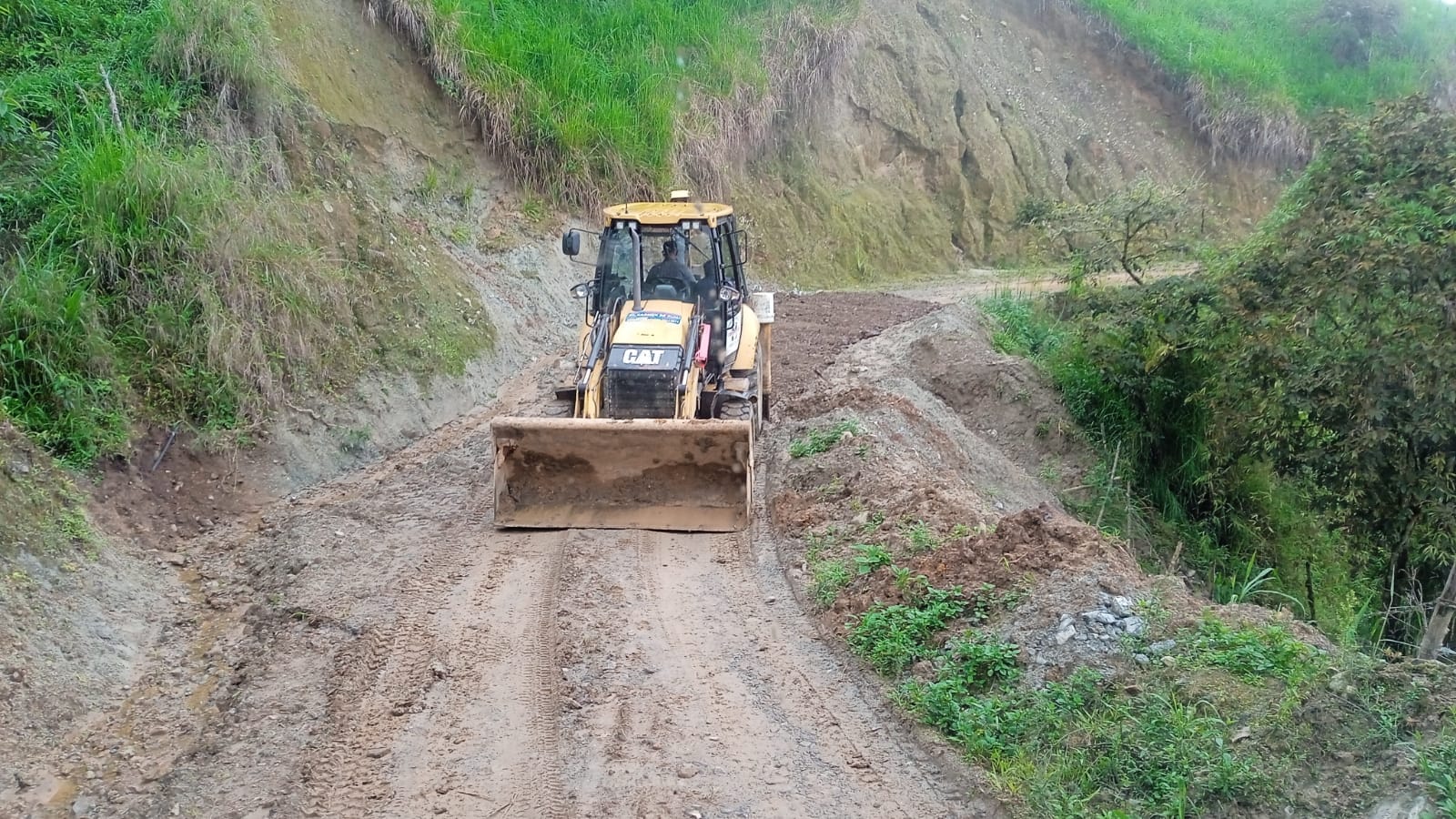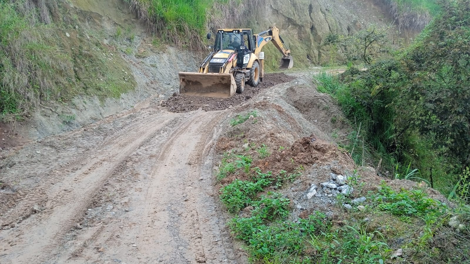 - Se realiza con maquinaria del Gad parroquial mantenimiento de parte de la vía en la comunidad 24 de Septiembre, que fue afectada por invierno, además se coloca tubos para pasos de agua.